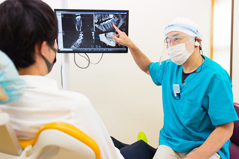 当院では患者さんに対して、専門用語をできるだけ使わず、身近なものへの例えを組み合わせながら分かりやすい説明を心がけております。専門用語を列挙した説明ばかり行っていては、治療に対する患者さんのご理解が十分とは言えず、納得していただける治療ができるとは限りません。分からない部分や不安なことは、一つずつ一緒に解決し、治療の内容に同意と理解を得られたうえで、患者さんの症例に合わせた治療を行っていきます。